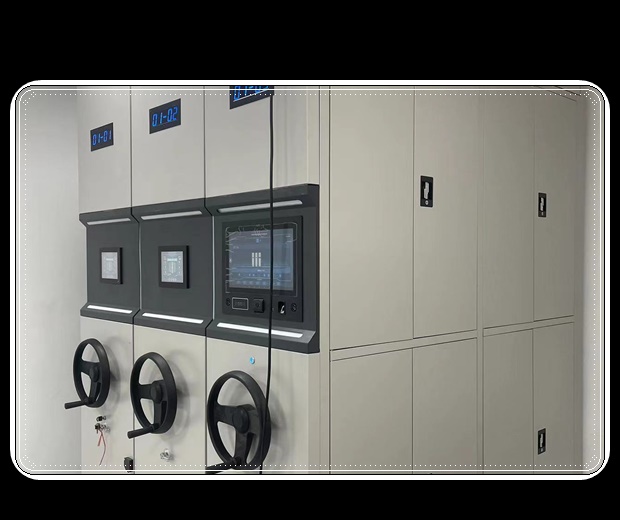病理密集柜具有載量多,使用方便等特點,主要用于檔案資料、證券憑證等的存放。主要由軌道、柜體、底盤、面板、門板、目錄卡及傳動裝置、防倒裝置、密封裝置九部分組成:
