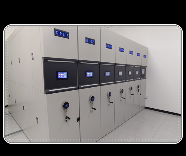 1、構(gòu)造:移動密集柜、固定柜為框柜鋼結(jié)構(gòu)。主要由20mm×20mm方鋼軌道、3.0mm底盤、1.5mm復柱立桿、1.0mm擱板、1.2mm側(cè)面板、1.0mm門板、旋動機構(gòu)、防震裝置、防倒裝置、制動裝置以及防塵、防鼠裝置等部分組成。